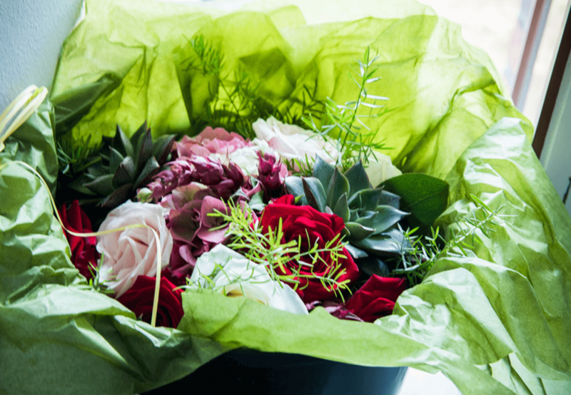 I små vaser, stora krukor, hängandes från taket, buketter eller prunkande, gröna växter – med lite blommor och grönt blir även den tristaste lokalen som en saga.